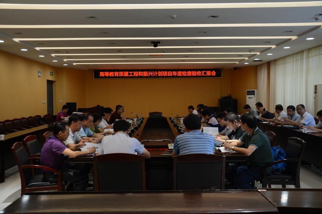 为了解学校高等教育质量工程和振兴计划在建项目建设情况,加强项目建设的监督管理,查找问题,总结经验,7月12日,学校召开高等教育质量工程和省级振兴计划项目检查验收汇报会,对2011年以来立项且未结题的国家级、省级质量工程项目和省级振兴计划部分项目进行检查验收。副校长郑明东主持会议,副校长宫能平出席会议。