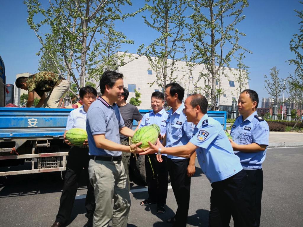 向战斗在一线岗位的职工送上西瓜(摄影 陈忠琴)