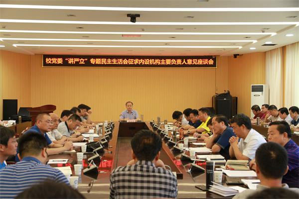 7月27日上午,学校党委在舜耕楼西配楼二楼会议室召开内设机构主要负责人座谈会,就开好党委领导班子“讲严立”专题警示教育专题民主生活会广泛征求意见。党委书记郭永存主持座谈会,校党委常委、副校长郑明东、吴照明、董雨参加了座谈会。