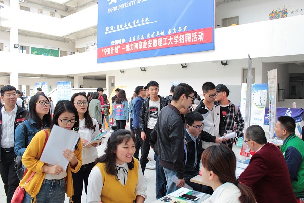 10月17日下午,“宁聚计划”—魅力南京赴安徽理工大学招聘活动在厚德馆举行。南京市劳动就业服务管理中心副主任郭锐率33家重点用人单位走进学校,延揽毕业生人才。