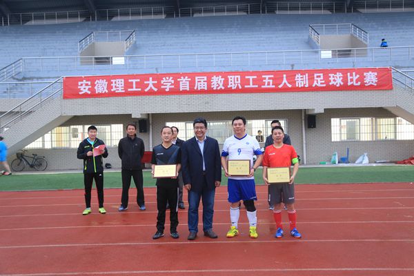 10月25日下午,校首届教职工五人制足球赛冠亚军、三四名决赛在至诚体育场火热开战。校党委常委、副校长董雨,校工会、体育部、校团委等部门负责同志到现场助阵并为获胜队伍颁奖。
