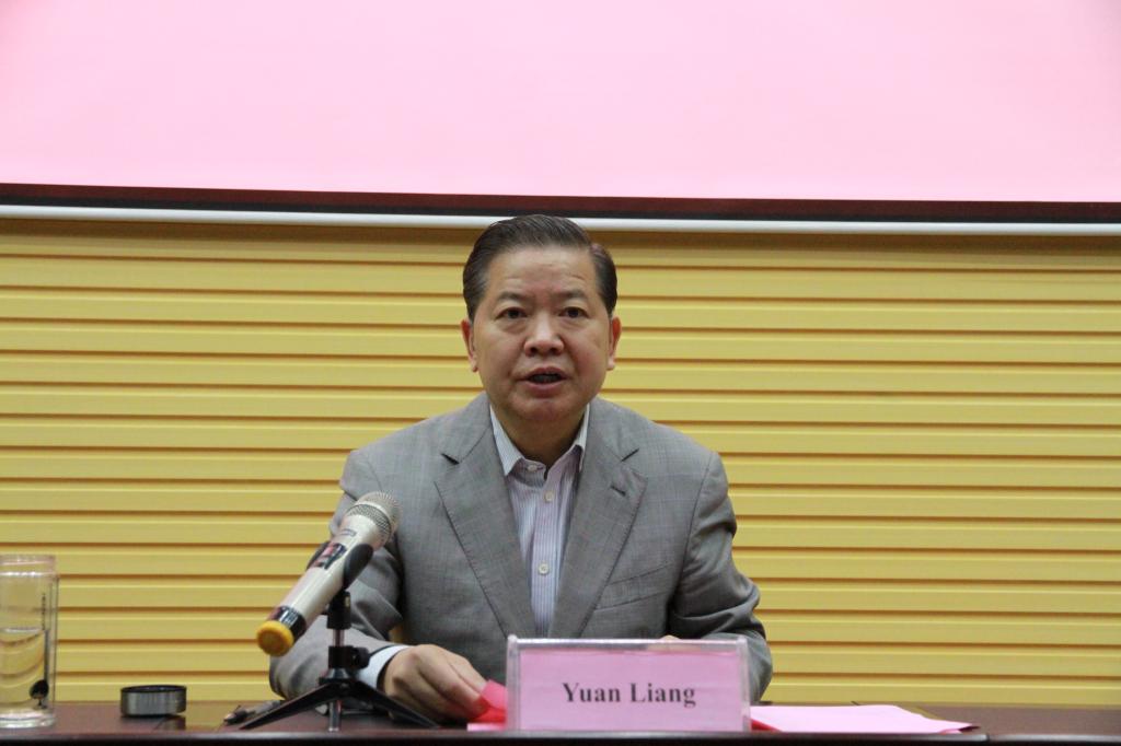 袁亮代表全校师生致辞,向2018级留学生新生表示热烈祝贺和真诚欢迎。他向留学生们介绍了具有悠久历史文化的美丽淮南,并从学校发展历史、师资、学科、专业及人才培养等方面介绍了学校的办学历史及近年来的快速发展情况。他表示,今日的中国正在通过“一带一路”等重大战略,与世界各国人民共享发展机遇,共创和谐繁荣;同学们不远万里来到安徽理工大学求学,学校将竭尽所能,为同学们提供全方位人性化的优质服务,创造和谐、良好、美丽的学习和生活环境。作为校长,他对全体留学生提出四点希望和要求:尽快熟悉和适应校园新生活,认真学习汉语,深度感知中国文化;刻苦学习,努力提高专业理论水平和实践技能;加强交流,将各国优秀文化传播到中国,推动中国文化走向世界,成为文化交流的使者;遵守中国的法律法规和学校的规章制度,努力成长成为安徽理工大学优秀学生!