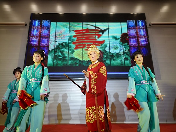 演出在国家一级演员张小萍生动美妙的唱腔中拉开帷幕,委婉清新、优美动听的黄梅曲调在校舜耕会堂回荡。感人的剧情,韵味丰富的唱腔……黄梅戏传统小戏《闹花灯》、《打豆腐》、经典剧目《闹黄府》及黄梅戏表演唱接连上演,不时赢得师生们的阵阵掌声。短短一个半小时的演出,36名戏曲艺术家将一幕幕经典近距离呈现在师生的眼前,让大家清晰地领略到传统戏曲的独特魅力和中华民族特有的文化艺术精髓。