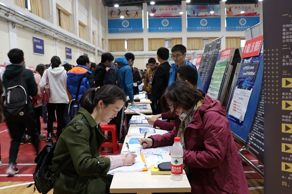 据悉,自9月份以来,学校先后为2019届毕业生举办就业大型洽谈会1场、企业集团和地方人才中心组团招聘会34场、专场招聘会487场,1372家用人单位到校选聘毕业生,到校招聘的用人单位数量比去年同期增加264家。