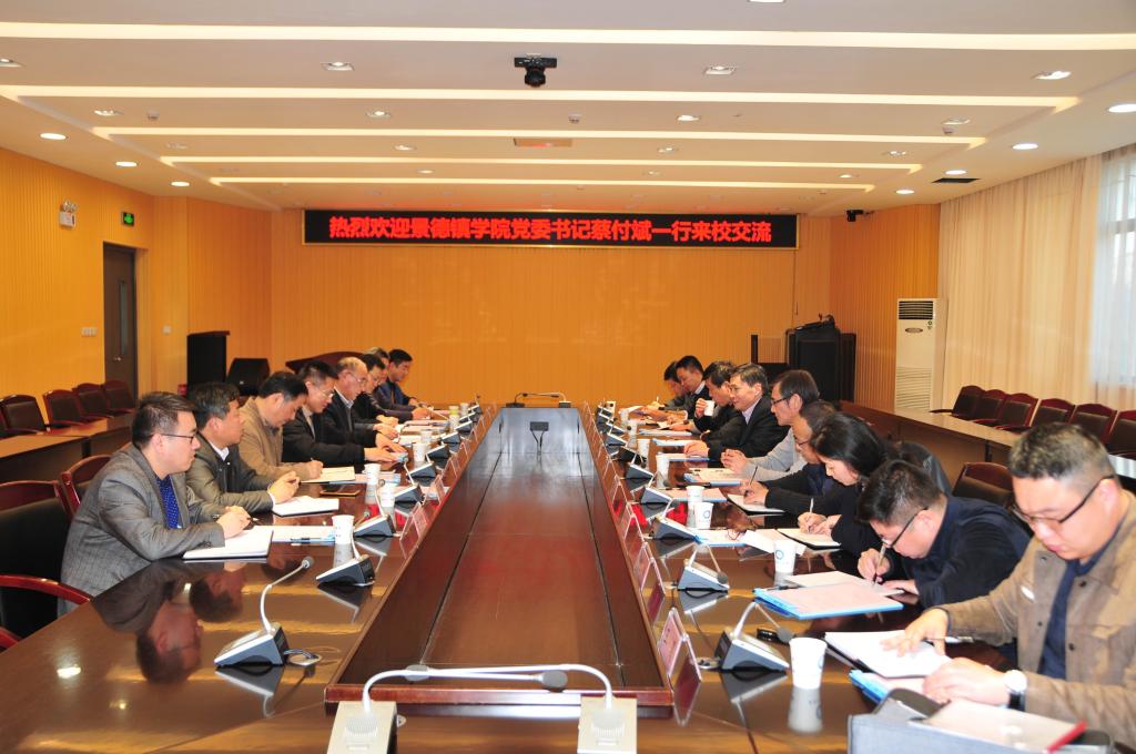 蔡付斌对学校的热情接待表示感谢,他介绍了景德镇学院的历史和发展现状。他说,学校整体搬迁工作经验和做法具有很强的指导性和借鉴性,对景德镇学院做好新校区搬迁工作具有重要意义。