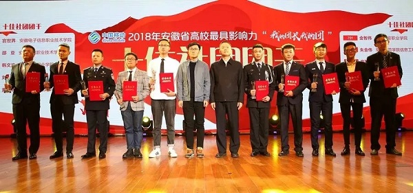 为全面贯彻落实全国高校思想政治工作会议精神,11月22日,由安徽省委防范办、安徽省教育厅、共青团安徽省委主办的2018年安徽省高校最具影响力“我的团长我的团”颁奖盛典在合肥大剧院圆满落幕,我校大学生未来企业家协会会长刘晨同学荣获全省“十佳社团团干”荣誉称号。