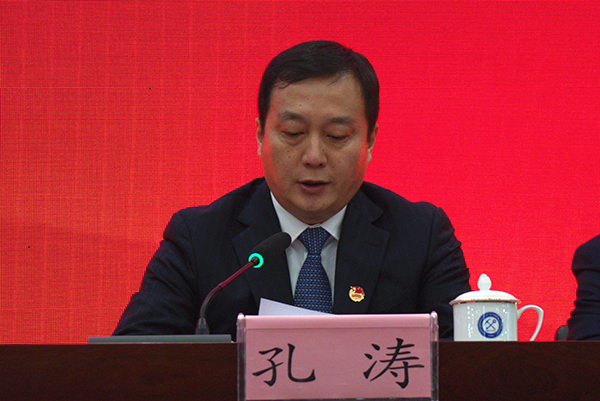 孔涛代表共青团安徽省委向大会的召开表示祝贺。他在讲话中指出,安徽理工大学各级团学组织在校党委的坚强领导下,紧紧围绕立德树人根本任务,将共青团工作有机融入学校人才培养的全过程,做了大量卓有成效的工作,取得了宝贵而丰富的经验,学校团学工作在很多方面走在了全省前列,对此,团省委是充分肯定、十分满意的。他代表共青团安徽省委对全校团员青年、团学干部和团学组织提出要求,要以习近平新时代中国特色社会主义思想为指导,引领青年学生坚定理想信念;深入推进共青团改革再出发,推动团学工作不断焕发蓬勃的生机与活力;积极融入广大青年,不断提升服务青年学生成长成才的能力和水平。