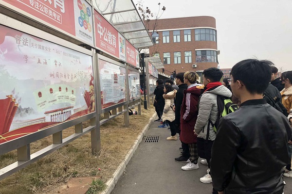 同学们观看“五法”宣传橱窗(摄影:王峥)