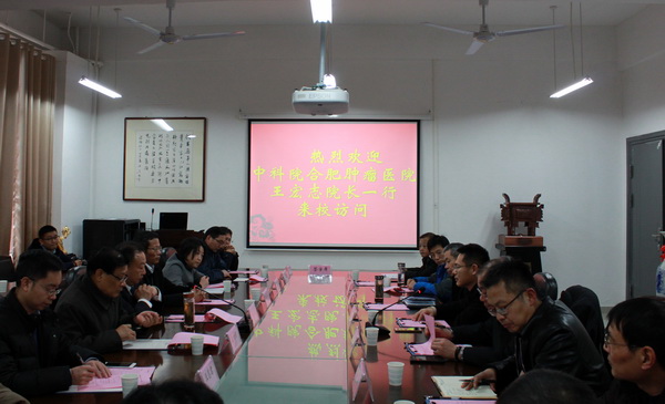 王宏志简要介绍了中科院合肥肿瘤医院发展历程与现状,表示将积极加强联系,在创新人才培养项目、科研项目、学生实习等方面建立更紧密、更务实的合作,实现双方合作共赢。