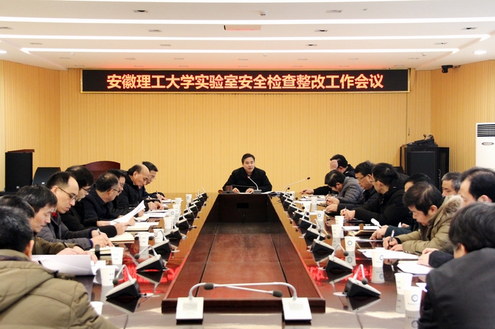 安全工作是学校头等大事,实验室安全是学校安全工作重中之重。为贯彻落实全国高校实验室安全管理工作视频会议和《安徽省教育厅关于立即开展实验室安全检查的紧急通知》精神,进一步加强实验室安全管理工作,学校在岁末年初安全检查的基础上,再次在全校范围内立即全面开展实验室安全检查整改工作,1月8日下午,学校召开了实验室安全检查整改工作部署会议。