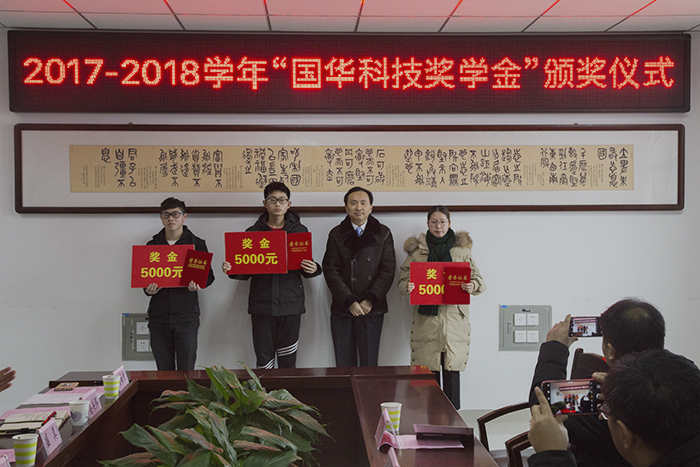颁奖仪式上,吴照明对北京国华科技集团有限公司在校设立奖学金以及长期以来对学校的支持表示由衷感激,对获奖学生表示祝贺。他引述习近平总书记在全国教育大会上的讲话精神,希望同学们坚定理想信念,厚植爱国主义情怀,加强品德修养,增长知识见识,培养奋斗精神,增强综合素质,努力把自己塑造成德智体美劳全面发展的优秀人才。