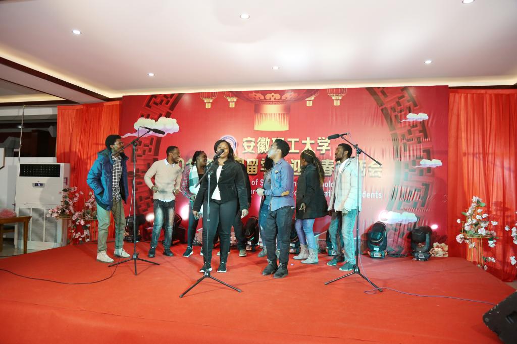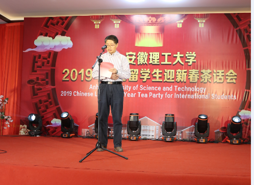 孟祥瑞致新春贺词。他首先向各位留学生送上了诚挚的新春祝福,并简要介绍了2018年学校取得的可喜成绩,在座的各位留学生是我校招收的首批学历留学生,既是学校过去一年建设发展的见证者,也是参与者和受益者。他表示,在新的一年里,学校将与各位老师、留学生携手推进安徽理工大学教育国际化的进程,努力为中外师生的学习和生活营造一个和谐、美好的家园,并希望同学们再接再厉,学好汉语和专业知识,积极参加各种专业技能训练和文化活动,努力成为德智体美劳全面发展的国际化优秀人才,成为增进国际友谊的桥梁纽带,成为人类多元文化交流的友好使者。
