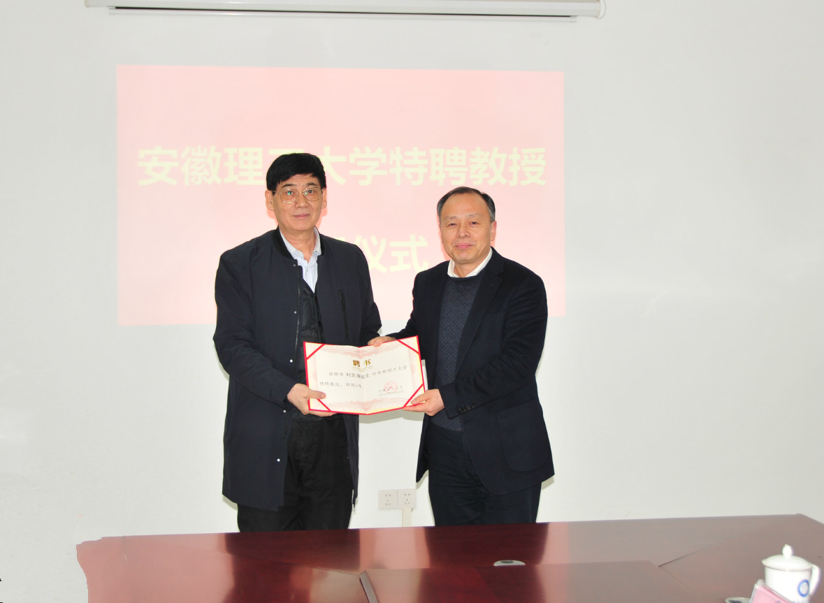 2月26日下午,学校在舜耕楼1210会议室举行聘任仪式,聘请中科院安徽光学精密机械研究所刘文清院士担任我校特聘教授。校党委书记郭永存出席会议并为刘文清院士颁发聘书,校长袁亮出席会议并讲话。会议由副校长郑明东主持。