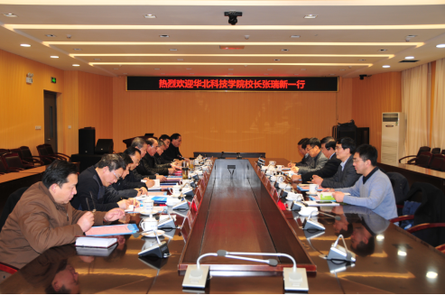 张瑞新对学校的热情接待表示感谢,对学校事业发展成绩表示钦佩,认为学校在推动改革发展的经验和做法对于兄弟院校建设具有重要价值,期待学校给予华北科技学院更多的支持和帮助,建议尽快建立行之有效的互动合作机制。