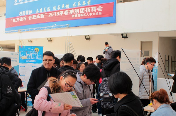 3月7日下午,“东方硅谷 合肥高新”2019年春季组团招聘会在我校厚德馆成功举行。此次组团招聘会汇集了合肥高新区各行业规模以上的优秀企业90多家,参会企业共提供各类岗位2000余个,其中要求硕士及以上学历岗位300余个。近2000名毕业生进入招聘会现场寻找就业机会。