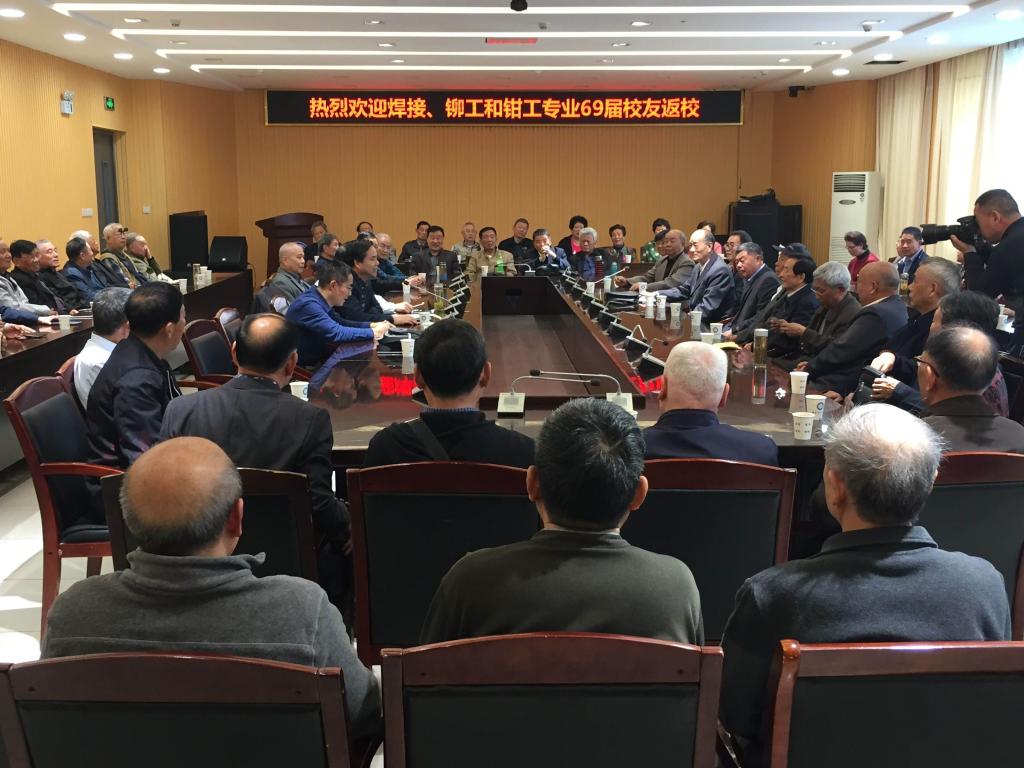 4月7日上午,我校焊接、铆工和钳工专业69届80多位校友返校参加毕业50周年联谊会。中国化学工程第三建设有限公司原党委书记、化专63届校友王九法,淮南市原副市长兼公安局长、化专63届校友段志兴等2位原任课教师应邀参加会议。校党委常委、副校长吴照明出席会议并致辞。