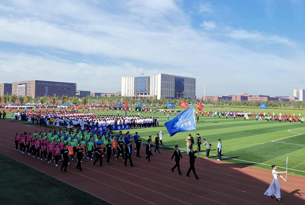 四月芳菲,青春正当时。4月18日上午,学校至诚体育场彩旗飘扬,人头攒动。校第39届运动会开幕式在此隆重举行。在校校领导郑明东、吴照明、宫能平、董雨、周旭出席开幕式。副校长董雨主持开幕式。
