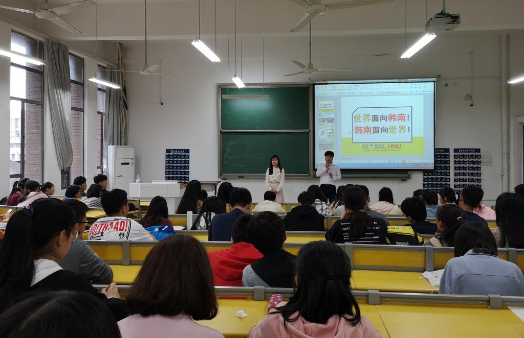 会后,金湖植一行在明理南102为我校有意向赴韩交流学习的学生作了“韩南大学交换生项目与短期文化交流项目”宣讲会,详细介绍了韩南大学的专业设置、校园设施及交流学习项目相关情况,并就学生关心的问题进行了详细解答。