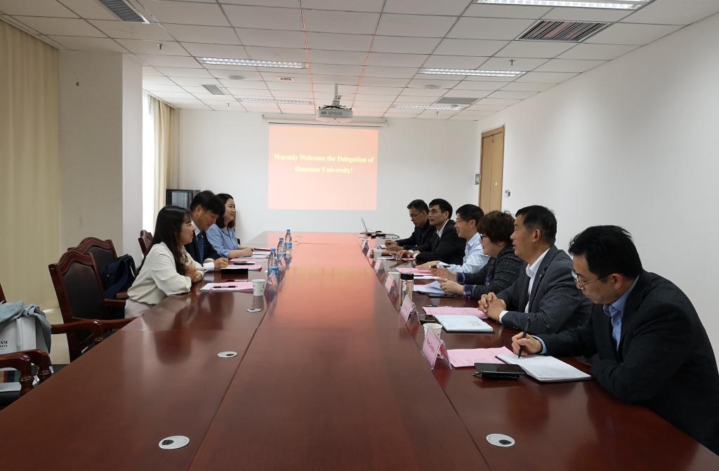 4月23日下午,副校长孟祥瑞在行政楼12楼会议室亲切会见了来校交流的韩国韩南大学国际交流中心副处长金湖植一行3人。