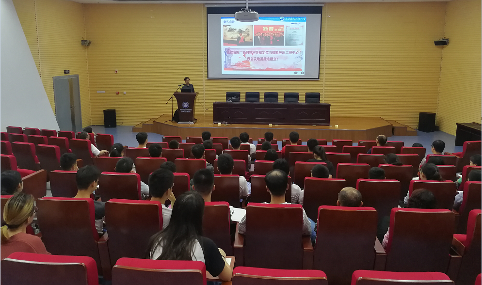 测绘学院负责人主持报告会并介绍了金双根教授的基本情况。测绘学院师生约50人聆听了报告。