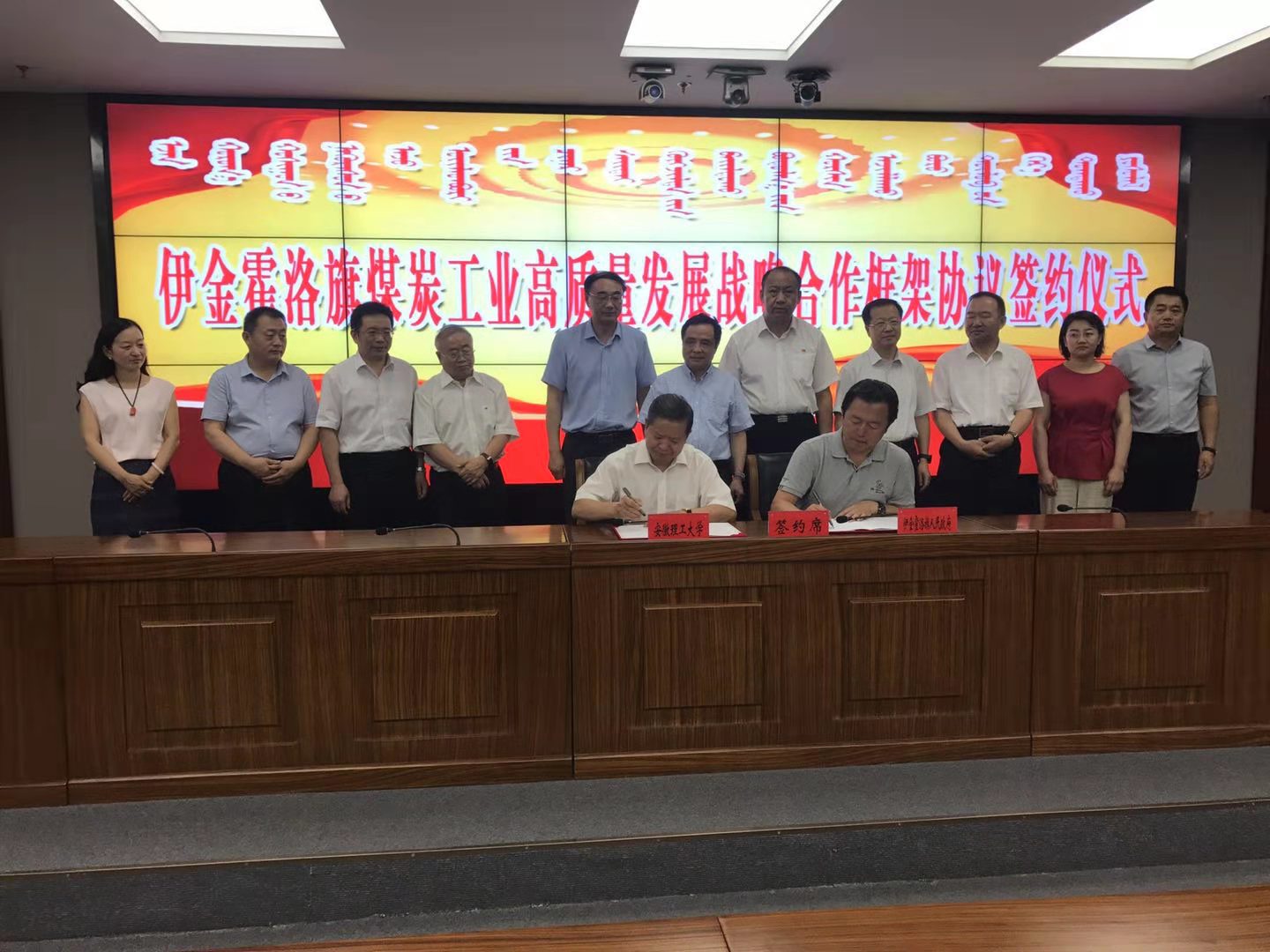 7月2日,伊金霍洛旗煤炭工业高质量发展战略合作框架签约暨院士座谈会在鄂尔多斯市伊金霍洛旗举行。校长袁亮院士出席会议并进行伊金霍洛旗煤炭工业高质量发展战略合作框架协议签约,完成0.54亿元“无煤柱开采关键技术研究”科研项目签约。中国工程院院士彭苏萍,伊金霍洛旗政府、伊金霍洛旗煤炭工业协会、伊伯特公司、安徽理工大学、中国矿业大学(北京)、北京科技大学、中煤科工集团等政府、企业、高校及科研院所相关人员参加会议。