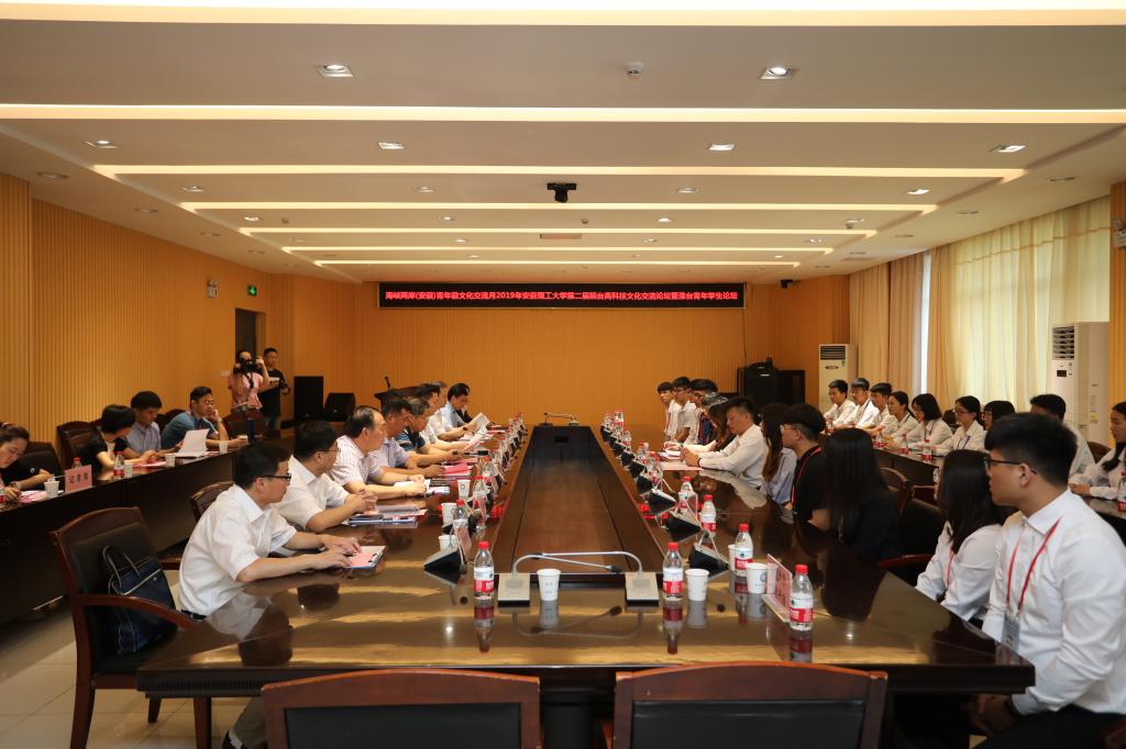 7月8日上午,海峡两岸(安徽)青年徽文化交流月暨2019年安徽理工大学第二届皖台高校科技文化交流论坛开幕式在舜耕苑二楼会议室举行。副校长孟祥瑞,淮南市委常委、宣传部长、统战部长许承通出席开幕式。