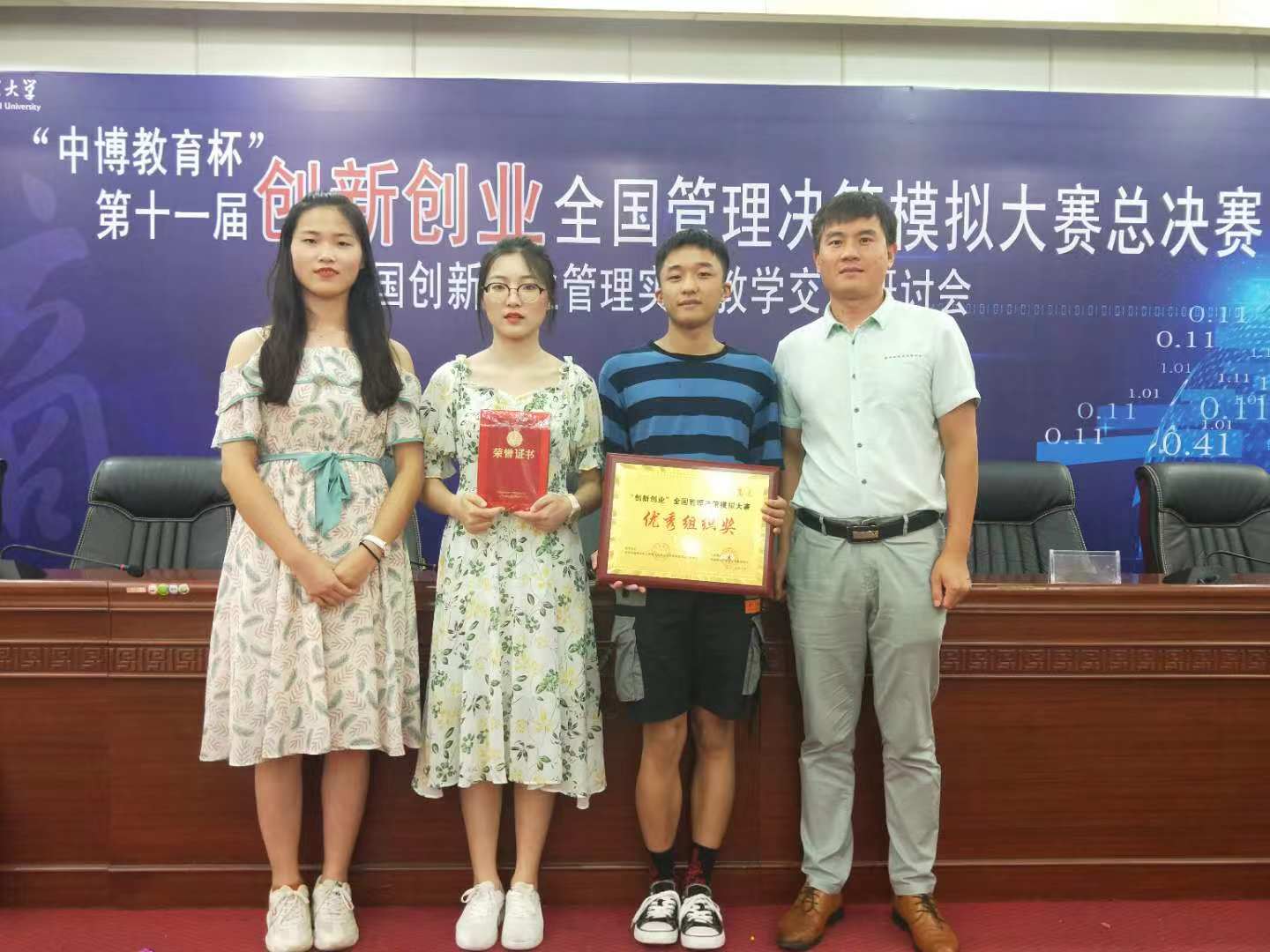 7月22日至23日,2019“创新创业”全国管理决策模拟大赛总决赛在西华师范大学成功举办,我校选送的由杨力教授指导的丁业宸、王林娟、李晓康等组成的“大吉大利”队在比赛中表现优异,获得一等奖;同时学校获得优秀组织奖。