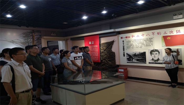 为着力深化党史、国史教育,激励和引领广大年轻干部大力弘扬以爱国主义为核心的伟大民族精神, 牢固树立“四个意识”,坚定“四个自信”,坚决做到“两个维护”,不忘初心、牢记使命,矢志投身新时代夺取中国特色社会主义伟大胜利的新征程,8月23日,学校团委组织共青团工作干部、第二届青年教工联合会委员部分代表赴岳西县红二十八军军政旧址开展“青春心向党 建功新时代”主题教育实践活动。