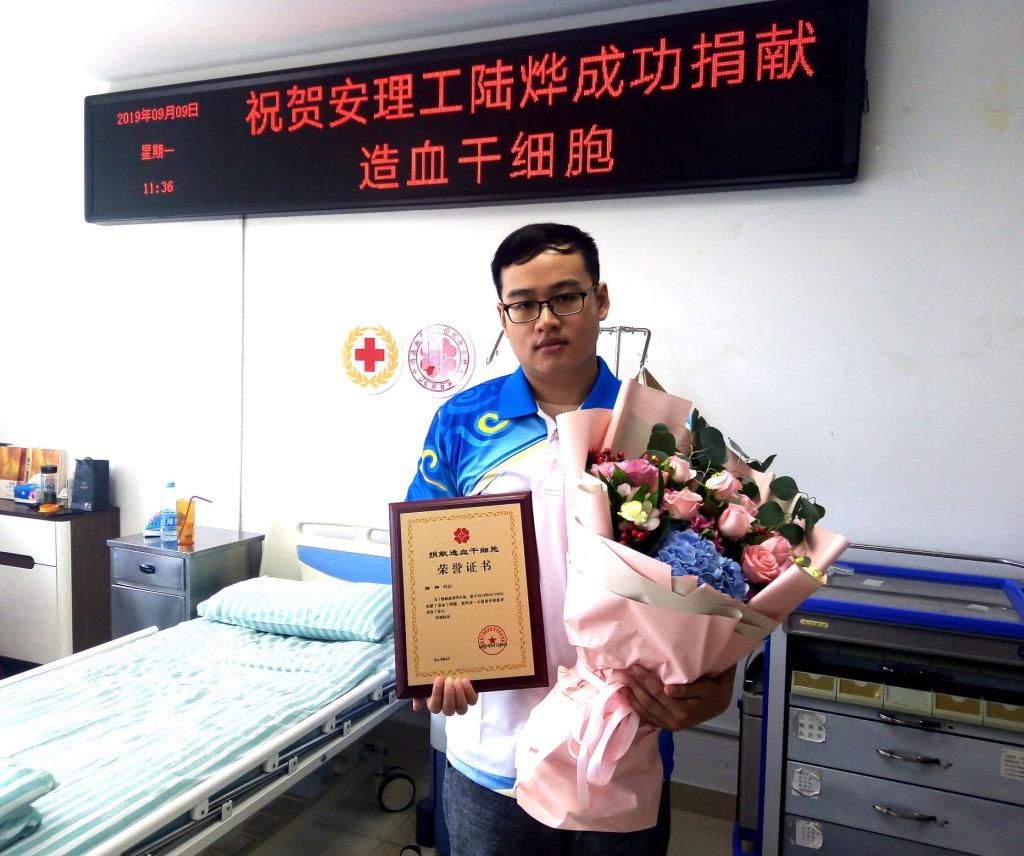 9月9日上午,我校外国语学院2016级日语专业学生陆烨在安徽省立医院成功捐献造血干细胞,挽救一名5岁急性白血病患儿。陆烨成为安徽省第191例、淮南市第21例、安徽理工大学第5例造血干细胞捐献者。据安徽省红十字会统计,截至目前,安徽理工大学已成为全省高校中造血干细胞捐赠者最多的高校。