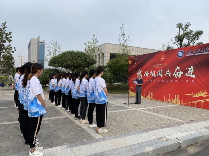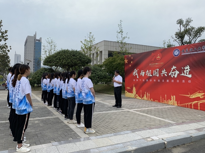 一面鲜红的国旗、一首激荡的国歌、一堂生动的主题团课、一段坚定的誓词……为庆祝中华人民共和国成立70周年,大力唱响礼赞新中国、奋进新时代的青春主旋律,9月25日清晨7时,由校团委承办的“我与祖国共奋进--国旗下的演讲”特别主题团日活动在舜耕楼国旗广场举行。校党委常委、副校长董雨出席活动并寄语青年。校关心下一代工作委员会办公室主任、校党委组织部原部长孙炳英应邀为青年学生讲授微团课。