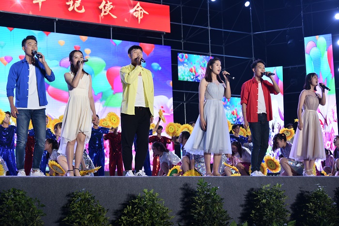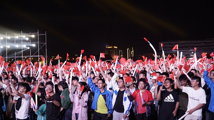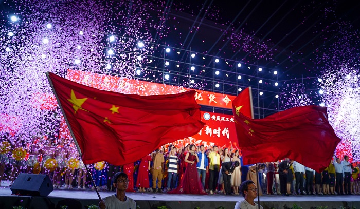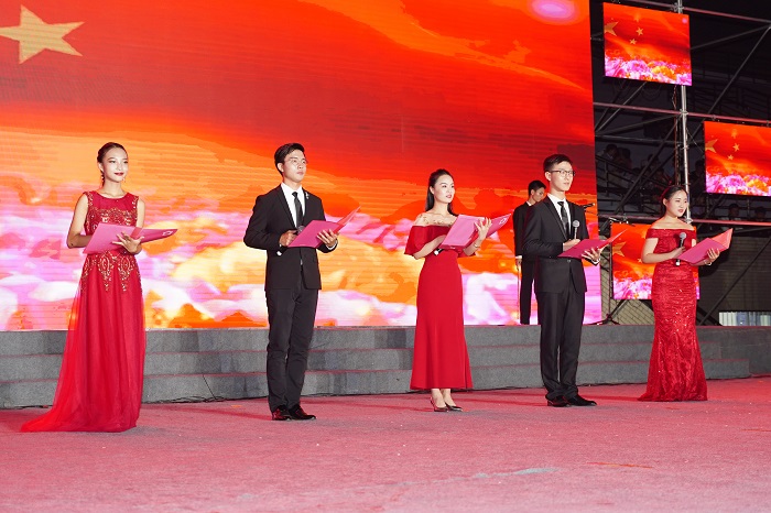为庆祝中华人民共和国成立70周年,歌颂伟大祖国70年来的光辉历程和巨大成就,喜迎2019级新同学的到来,9月28日晚,学校“栉风沐雨七十载,砥砺歌行新时代——庆祝中华人民共和国成立70周年暨2019迎新生文艺晚会”在至诚体育场隆重举行。校领导郭永存、虞宝桃、郑明东、吴照明、宫能平、董雨出席晚会。各学院(部)领导班子成员,机关职能部门、直属单位主要负责人,2019级学生辅导员、班主任,2019级本科生、研究生近万名师生共庆新中国70华诞。近万名校友和社会各界人士通过网络直播观看了晚会盛况。