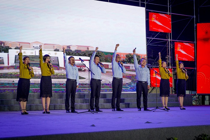 晚会在高亢激昂的合唱《歌唱祖国》中圆满落幕,师生全体起立,群情激荡,与舞台上的演员齐声高歌,手中挥动的五星红旗、眼中噙着的点点星光与璀璨耀眼的舞台灯光交相辉映,煞是美丽动人。