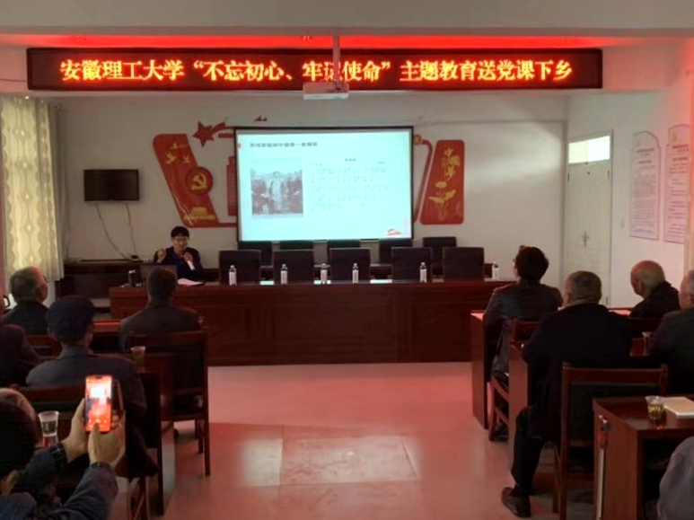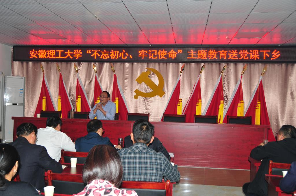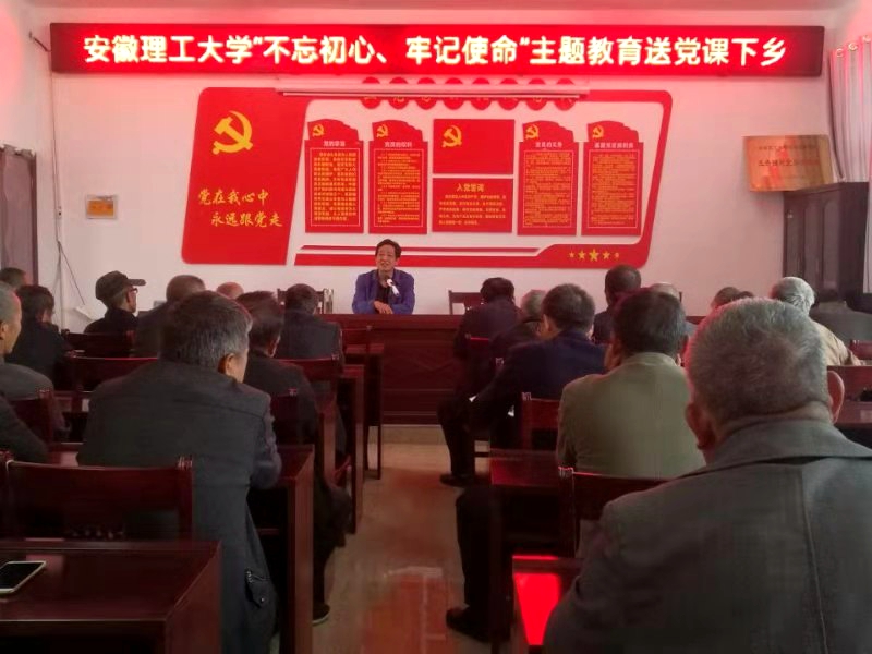 为发挥高校的资源优势,10月9日至10日,学校党委组织“不忘初心、牢记使命”主题教育宣讲团深入临泉县王香铺村、杨小村及淮南毛集实验区孙台村等学校定点扶贫帮扶村,开展主题教育送党课下乡活动,深受农民的欢迎。