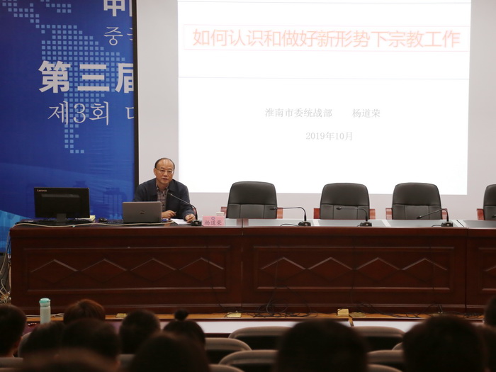 为深入学习贯彻习近平总书记关于加强和改进统一战线工作的重要思想、关于宗教工作的重要指示和批示精神,进一步提升统战工作意识,学校党委于10月16日下午在图书馆三楼报告厅举行统战工作专家辅导报告。报告会由校党委常委、副校长董雨主持,淮南市委统战部常务副部长吴丽萍和淮南市委统战部副部长、市民族宗教事务局局长杨道荣受邀分别作辅导报告。