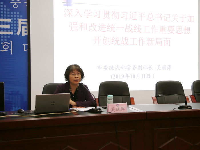 吴丽萍在题为《深入学习贯彻习近平总书记关于加强和改进统一战线工作重要思想,开创统战工作新局面》的辅导报告中,从中国特色社会主义进入新时代引入,结合统一战线工作历史渊源和指导思想,就如何认识新时代统一战线、统一战线的宏伟目标和战略地位展开讲解,由视野、格局、范围等多角度阐释新时代统一战线的主要特征、工作方针、工作的根本方法和主要工作任务,强调统一战线是党的事业取得胜利的重要法宝,必须长期坚持。