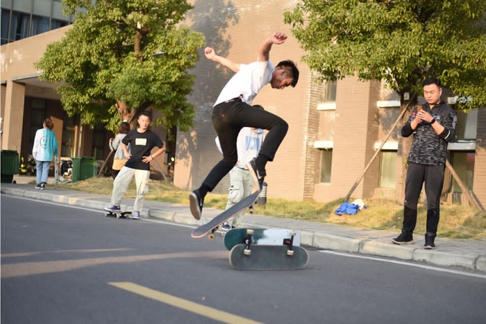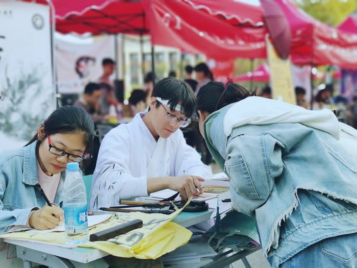“百团大战”展风采,万千创意青春派。正如活动现场一张张鲜亮的宣传海报一样,“与其在别处迷茫,不如在这里徜徉”,青春、热情、欢乐成为活动现场的关键词。游走在各社团的招新展示区,就像品尝一道道丰盛美味的“校园文化盛宴”,国学风采与嘻哈文化在这里交流碰撞,运动竞技与科技展示在这里竞相绽放;吉他协会与BEAT MY BOX协会用爆裂节奏和动感音符唱响年轻人专属的青春旋律,FUSION舞剧社与曳灵舞社以热情的舞姿释放无尽的青春魅力;书画协会这边力透纸背、笔走龙蛇,魔方社那边层层叠叠、旋转精彩;爱心社这里弘扬风尚、传递大爱,航模协会那里敞开梦想、自由飞翔;更有军事爱好者协会无伤害的水弹枪模拟射击、燃点滑板社的滑板表演、天音协会的民乐西洋乐合奏等活动展示。精彩纷呈的社团风采展示吸引了过往师生的广泛关注和热情参与,尤其让2019级新同学们眼花缭乱,大家争前恐后地报名参加。留学生的身影也随处可见,学生社团国际化成为了本次招新活动的一大亮点。