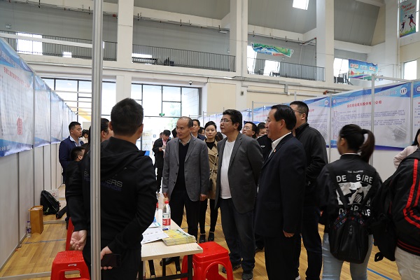省教育厅相关职能部门领导、副校长董雨深入洽谈会现场
