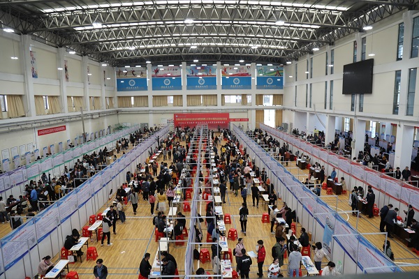 本次就业洽谈会规模和参会单位数量创历史新高,招聘模式采取线上线下相结合,提高了学生在大型招聘会上的签约效率。线上,依托我校的就业信息网络平台,用人单位网上报名,就业创业指导中心审核通过后,所有招聘信息同步发布到就业信息网、校企对接QQ群和微信公众平台,使学生有针对性地与企业进行面试和交流,大大提升了招聘效率,避免了学生求职的盲目性;参会行业涉及建筑、机械、制造、汽车、材料、电力电子、煤炭、民爆化工、金融、IT、医疗卫生、测绘、环保、生物制药、教育科研等多个领域,所需求的专业涵盖我校全部本科和研究生专业;其中参会企业世界500强25家,中国500强43家,中国民营企业500强73家,提供岗位15000余个。洽谈会现场气氛热烈,秩序井然。参会的用人单位数量较去年增长了82%,据统计,200多名毕业生现场签订了就业协议,1600多名毕业生与用人单位达成了就业意向。线下,为了扩大此次招聘会的知晓度,就业创业指导中心规范了招聘会现场的展位,统一制作用人单位的宣传喷绘,设计了衔架、海报、横幅、展位分布图、电子屏等,充分利用一切宣传手段营造良好的校园就业招聘氛围,会场还吸引了近千名在校大三学生积极参与,他们通过观摩与交流,感受招聘现场热烈的气氛,掌握相关的就业信息,促进了生涯意识的建立,为今后的就业打下坚实基础。