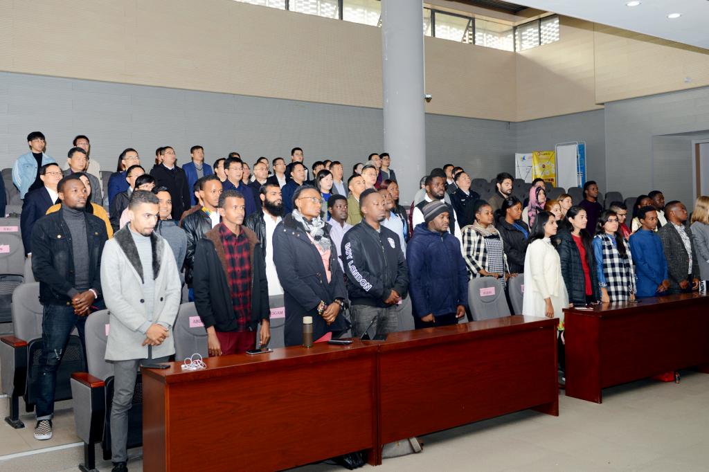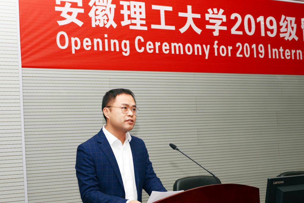 袁亮向2019级留学生新生表示热烈祝贺和衷心欢迎,并简要介绍了历史文化名城——淮南市概况以及学校的发展历史、师资队伍、学科专业设置、人才培养成就等。他指出,近年来学校在国家级科研平台建设方面取得重大成就,在“煤炭安全智能精准开采”“工业粉尘防控与职业安全健康”“非常规能源开发利用”等领域已跻身中国乃至世界前沿。他表示,当前,中国正在深入推进“一带一路”倡议,与世界各国人民共建美好世界,共享发展成果,而在座的留学生正是中国发展与世界融合的亲历者和建设者。作为校长,他希望留学生们能够把美丽的安徽理工大学视为“第二故乡”,认真学习汉语,全面深入感知中国文化,努力学好专业知识,遵守中国的法律法规和学校的校纪校规,尊重各国不同的文化习俗,追求“和而不同”的人生境界,努力成为科学知识的传播者、人类文明的传承者、文化交流的使者。