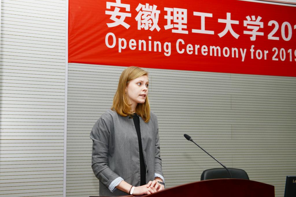 2019级留学生代表、来自俄罗斯的Daria Lukicheva表示能在安徽理工大学继续深造求学是她的荣幸,学无止境,在接下来的学习生活中,她会博学笃志、发奋图强,坚信一分耕耘一分收获。她会珍惜在安理的每一天,认真学习汉语,体验中国文化,加强专业技能。