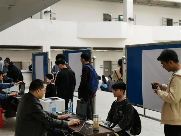 为方便我校学生参加2020年全国硕士研究生招生考试现场确认,经学校与淮南市教育招生考试中心协商,在我校校内设置现场确认点。11月5日,淮南市教育招生考试中心一行5人,在学校厚德馆一楼大厅设置了3组摄像确认点,为本校2020届本科毕业考生进行现场确认。截止到当天下午5点,共3092名考生完成确认。
