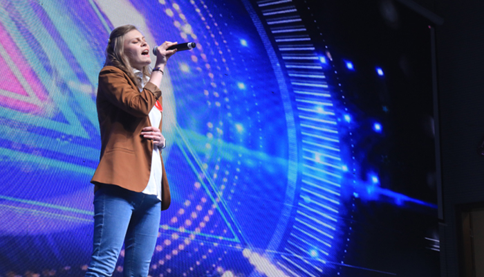 比赛精彩纷呈,给师生们呈现了一场视听盛宴。通过校园海选赛选拔,20名优秀选手从近500名参赛选手中晋级决赛。在正式比赛前,往届优秀歌手和20位晋级选手以团队演唱的形式拉开比赛帷幕,伴着《我爱你中国》的旋律响起,现场气氛瞬间被点燃。在随后进行的两两PK中,何雨轩、石鲸卉用他们高亢嘹亮的嗓音深情演唱的《你就不要想起我》瞬间点燃了全场,王寒笑自弹自唱的歌曲《理想三旬》以及宏威独唱的《姬和不和》更是将现场气氛一次次推向高潮。