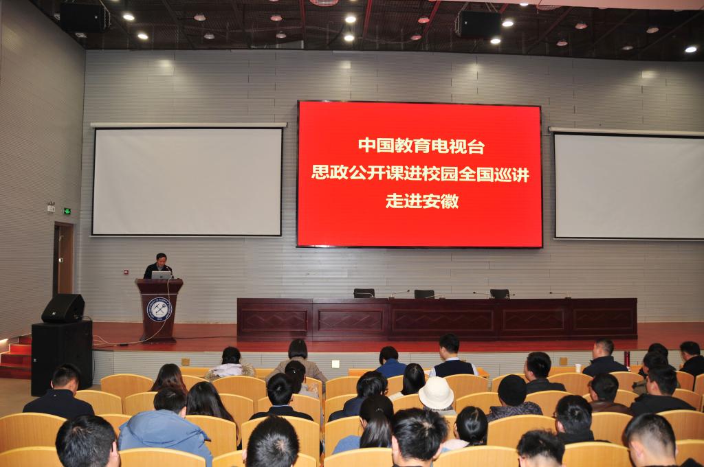 为继续深入学习和落实习近平总书记关于思政工作的系列重要讲话精神,结合学校“不忘初心、牢记使命”主题教育,12月5日下午,“中国教育电视台思政公开课进校园全国巡讲——走进安徽”专场报告会在我校舜耕会堂举行。哈尔滨理工大学少数民族学生专职辅导员任佳伟、高校思想政治工作队伍培训研修中心(郑州大学)办公室副主任聂娜、安徽理工大学辅导员李洁三位辅导员作专题报告,结合自身工作经验和当前中国发展实际,就如何开展好思政教育、如何做好辅导员工作进行了深入交流。
