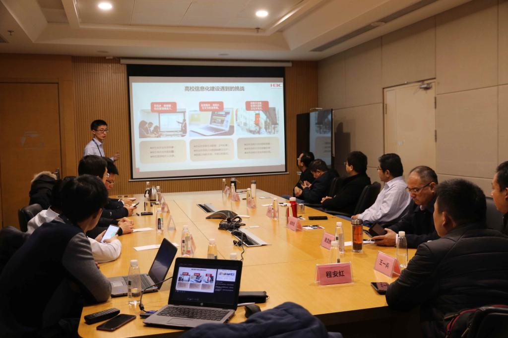 12月18日上午,校党委常委、副校长董雨一行赴新华三技术有限公司安徽代表处开展智慧校园建设与校企深度合作调研,受到新华三信息安全公司副总裁王冬、安徽代表处总经理盛剑晖等热情接待。