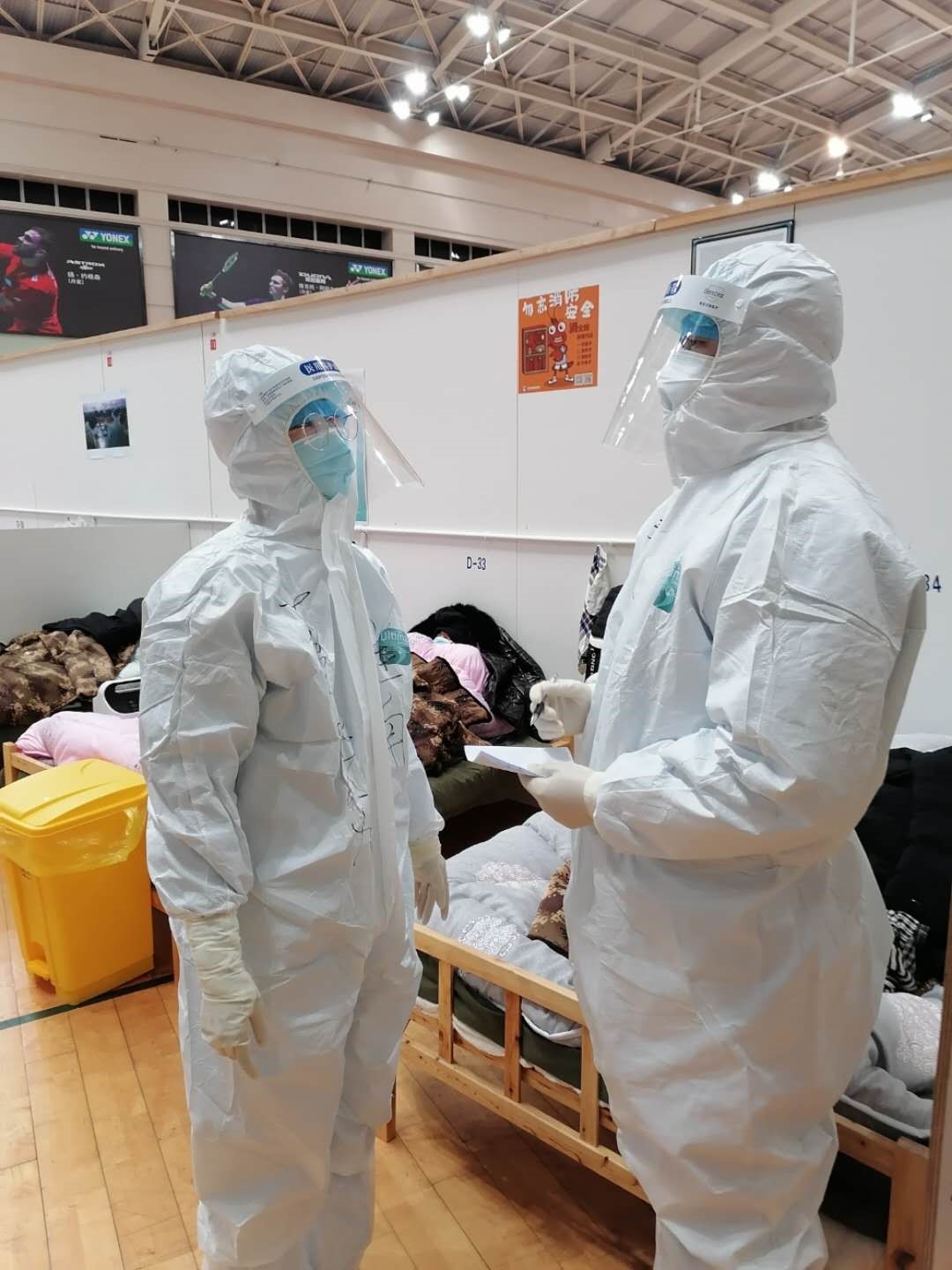 2月15日,武汉寒潮来袭,气温骤然下降。夜里凌晨一点,伴着雪花,我校第一附属医院(淮南市第一人民医院)首批驰援湖北抗疫医疗队准时抵达武汉体育中心方舱医院,更换防护服,准备接班。这是队员们来到武汉的第六天,也是正式进舱的第四天。