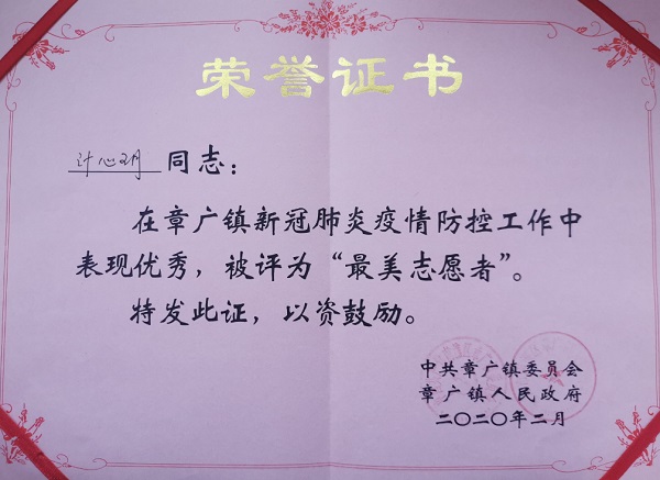 谈及参加此次“战役”一线志愿服务感受时,计心玥说:“在全国上下,众志成城,万众一心,共同抗击疫情时,有无数‘无论生死,不计报酬’的最美逆行者,让我感动和钦佩。作为青年大学生,作为入党积极分子,我有责任更有义务勇敢地站出来,为家乡疫情防控出一份力,做一点贡献。我相信,‘战役’胜利一定属于我们英明的党、伟大的祖国、团结一心的人民!”