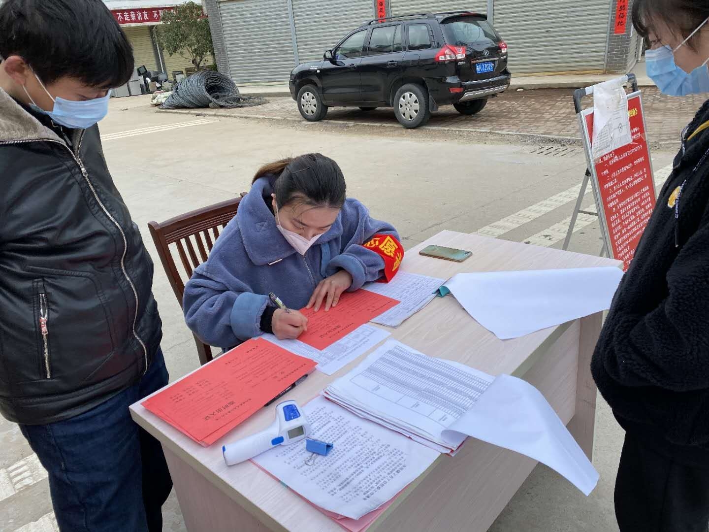 葛敏认真记录往来人员体温信息