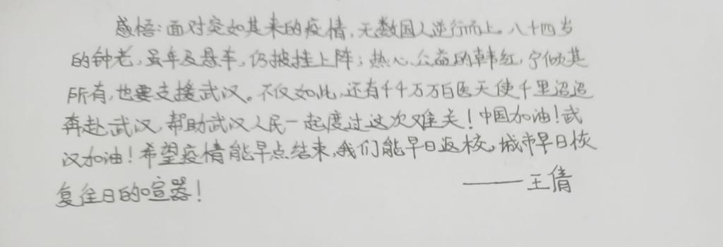 能源与安全学院的所有辅导员与同学们一起收看直播或者回放,部分师生还不止观看一遍,他们认真记笔记,主动撰写观后感。很多师生收看以后,认为这次思政大课召开的很及时,在疫情发生的特殊时期,开展大学生思想政治教育,既是做好疫情防控工作的需要,也是提升大学生思想政治教育针对性和亲和力的有利契机,观看后受益匪浅。医学院辅导员尤佳锋说,在这场没有硝烟的战斗中,抗疫英雄们用生命和鲜血阻击了“疫魔”的肆虐,他们是中华民族的脊梁,他们的“逆行”精神是激励我们前行的力量。作为高校学生工作者,我们要积极向学生传播家国情怀、爱国主义精神,让学生从“逆行者”的事迹中汲取奋发的力量,鼓励学生为实现中华民族伟大复兴的中国梦而不懈奋斗。