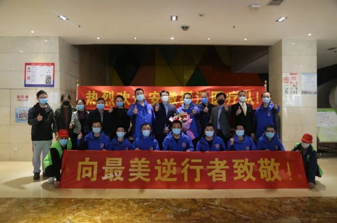 肩负使命英勇出征,满载荣誉平安凯旋!3月19日中午12时许,我校第一附属医院(淮南市第一人民医院)医学影像科张龙与安徽省第二批、第八批支援湖北医疗队员一同乘坐包机顺利抵达合肥。