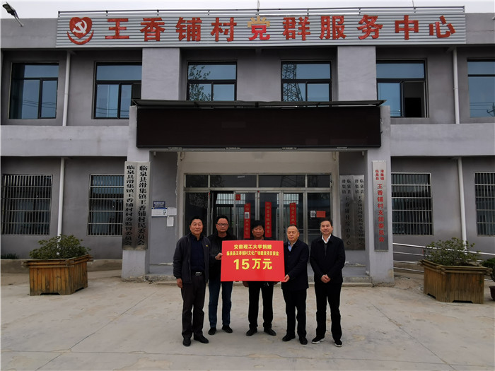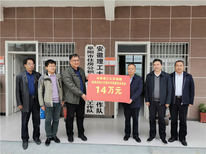 在临泉县帮扶点,郭永存与镇、村干部和驻村工作队进行了座谈,详细听取了驻村工作队的工作汇报,实地查看了我校援建的大棚蔬菜产业扶贫项目。郭永存代表学校向王香铺村捐赠“文化广场建设项目”扶贫资金15万元,向杨小村捐赠“洒水车和道路畅通项目”扶贫资金19万元。